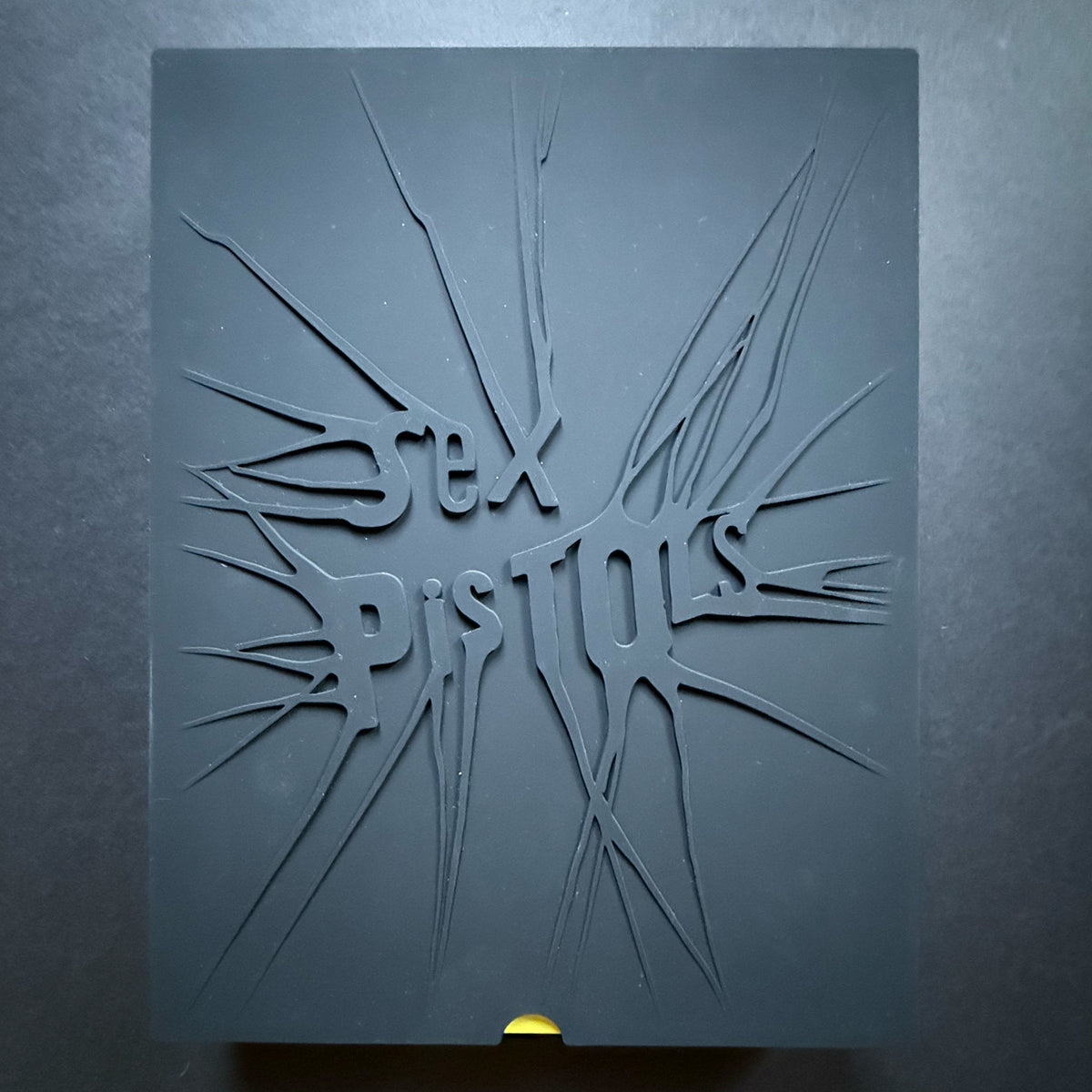 RARE WAREHOUSE FIND FOR THE 50th ANNIVERSARY of the first ever SEX PISTOLS GIG: The long-out-of-print SUPER DELUXE edition of the 2016 Sex Pistols coffee table book! Limited edition of 350 copies in Jamie Reid design box with rubber book slipcase designed by POW artist Zevs! Special edition also contains official Jamie Reid stamped silkscreen, Zevs embossed silkscreen of liquified logo and silkscreen of the legendary Screen on the Green show poster alongside triptych of Sex Pistols media hype graphics and zine of ultra-rare 1970s Sex Pistols press clippings!