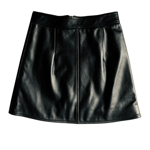Black Lambskin Leather Front Zip Mini Skirt-Premium Italian Lambskin-Front Zip-Shiny Nickel hardware-Made in New York City