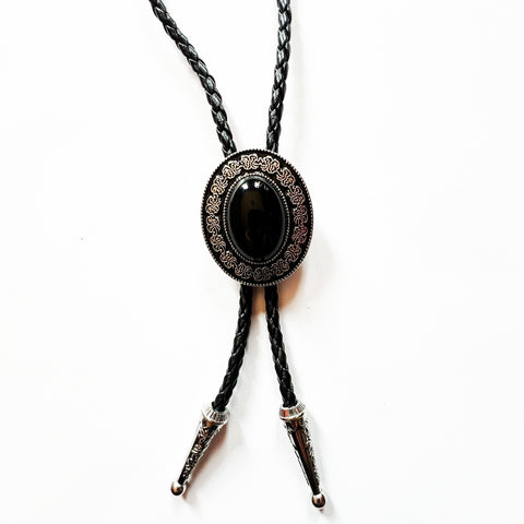 BLACK ONYX ORNATE BOLO TIE BLACK ONYX ORNATE BOLO TIE