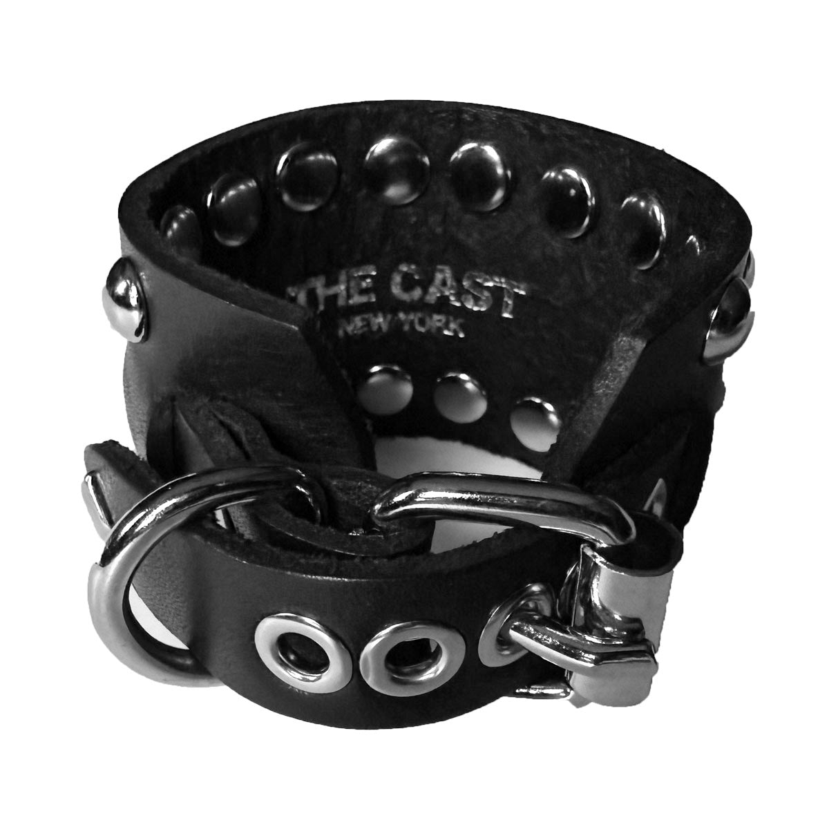 Made with our Premium Heavyweight 10 oz. Latigo leather, the 'WILD THING' Cuff is embellished with both small and large shiny silver dome studs, eyelets & buckle closure. Embossed with The Cast New York on the inside.